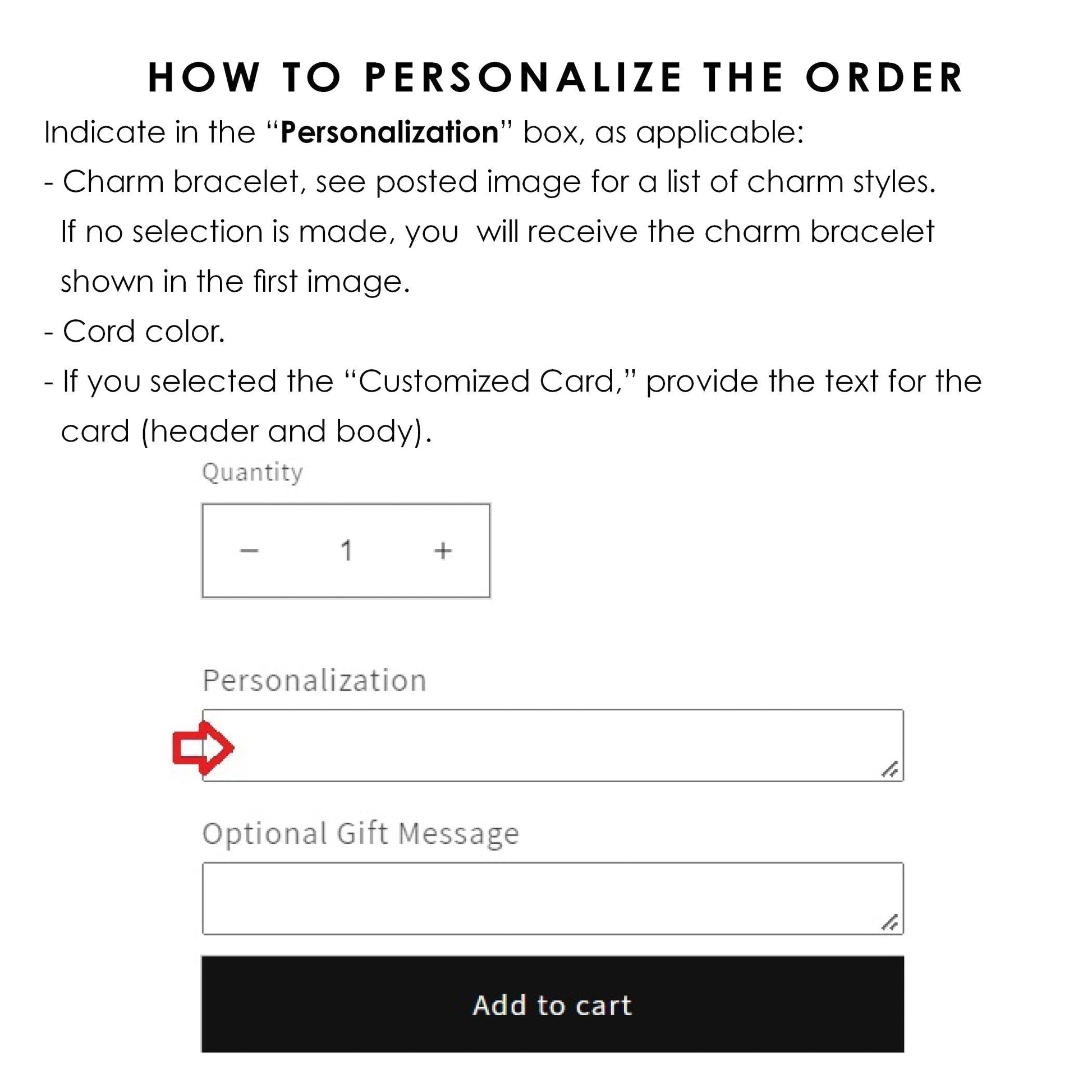 For the Succulent Gift Boxes or Spa Gift Boxes, we'll be happy to customize the bracelet card for FREE!