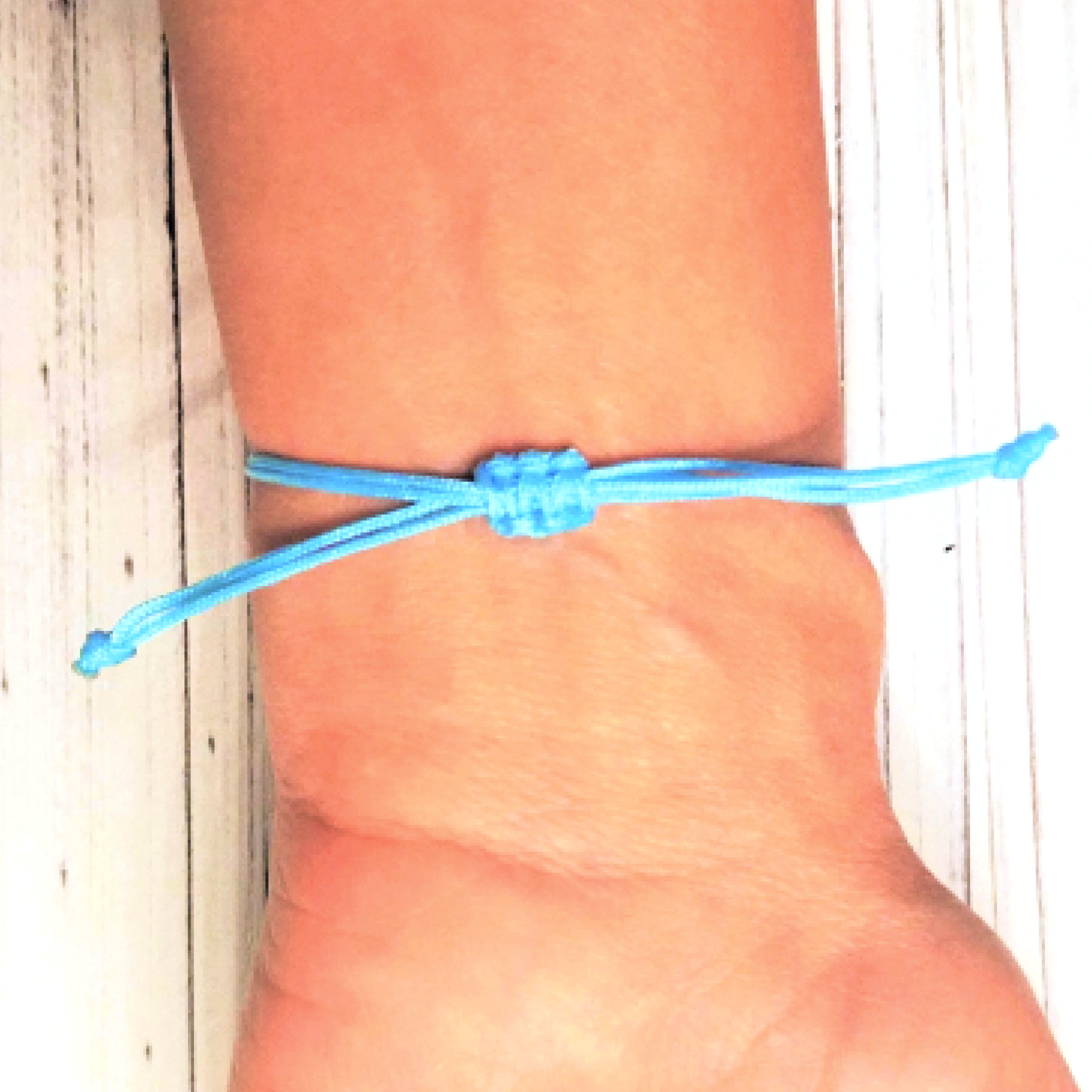 • Waxed cord available in a wide variety of colors for you to choose from. The bracelet comes with a special sliding closure (macrame' closure) that moves back and forth and allows the bracelet to adjust.