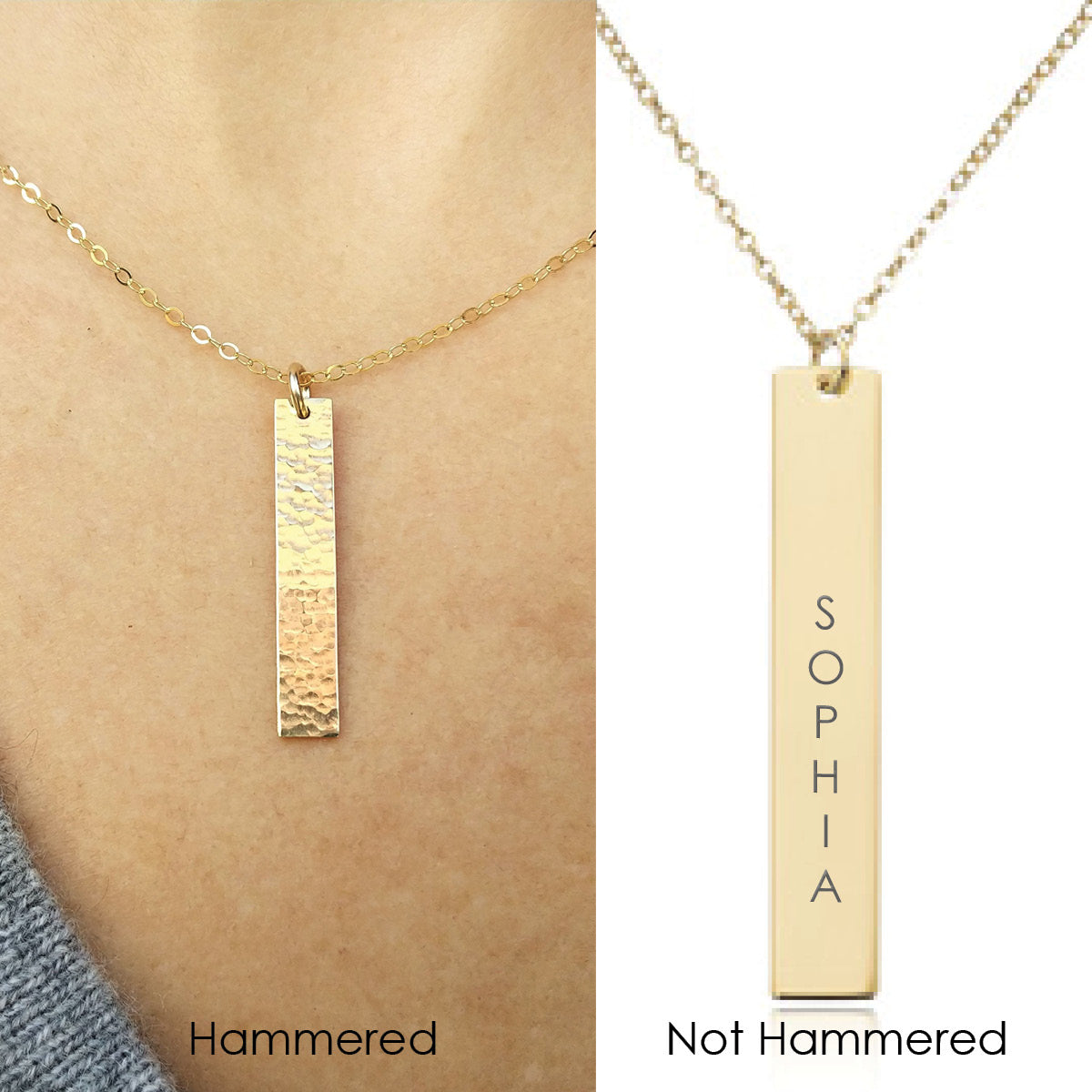 Hammer Vertical Bar Necklace ‖ Personalized Necklace ‖ Name Necklace ‖ Layering Stacking Necklace ‖ Engraved Bar Necklace ‖ Custom Engraving